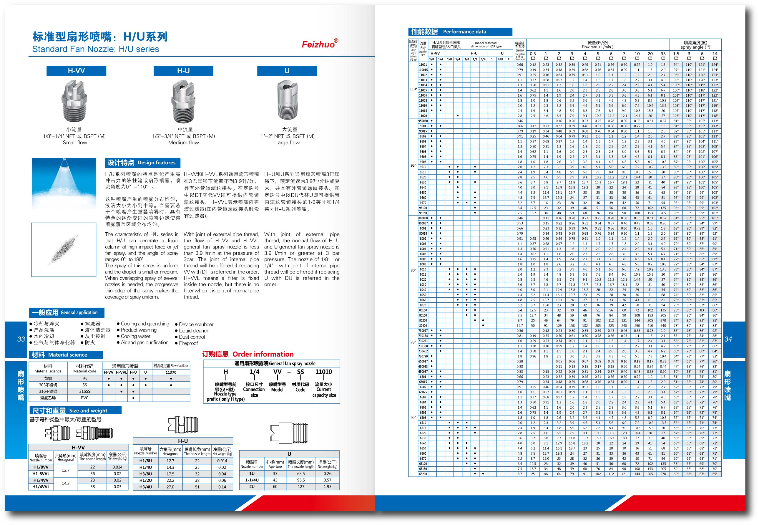 扇形噴嘴選型參數(shù)表-Feizhuo斐卓