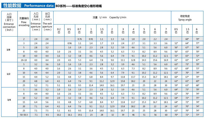 BD系列噴嘴有標(biāo)準(zhǔn)角度和廣角度之分。